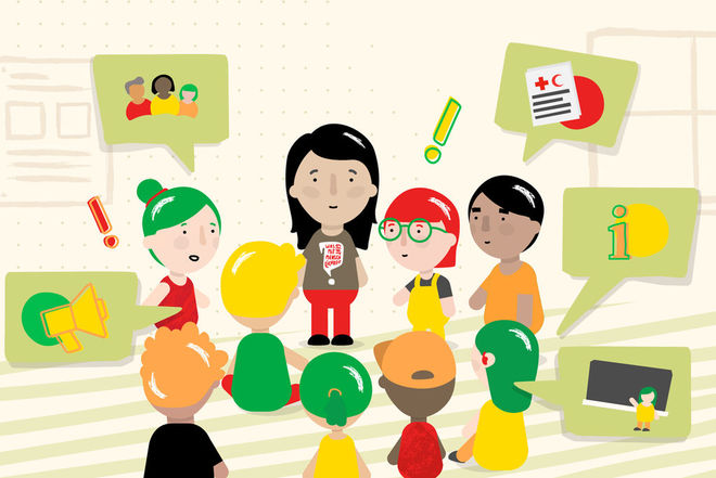 Das Jugendrotkreuz führt Kinder spielerisch an Grundbegriffe der Ersten Hilfe heran. So lernst du von klein auf, dass und wie du dich für Menschen in Not einsetzen kannst.