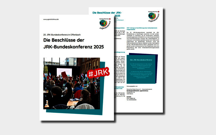 Sie befinden sich hier: StartseiteMediathekRelevante Beschlüsse Relevante Beschlüsse Hier findest du die Beschlüsse der JRK-Bundeskonferenzen beginnend mit der 14. JRK-Bundeskonferenz 2019. Beschlüsse der 20. JRK-Bundeskonferenz 2025 Hier findest du die Beschlüsse der BuKo 2025. Beschluesse_der_20._JRK-Bundeskonferenz_2025.pdf 296 KB Beschlüsse der 19. JRK-Bundeskonferenz 2024 Hier findest du die Beschlüsse der BuKo 2024. Beschluesse_der_19._JRK-Bundeskonferenz_2024_web.pdf 573 KB Beschlüsse der 18. JRK-Bundeskonferenz 2023 Hier findest du die Beschlüsse der BuKo 2023. Beschluesse_der_18._JRK-Bundeskonferenz_2023_web.pdf 323 KB Beschlossene Positionen: PDF: Positionspapier „Ganztagsschule 2026“ des Deutschen Jugendrotkreuzes PDF: Positionspapier „Stärkung ehrenamtlicher Leitungskräfte“ des Deutschen Jugendrotkreuzes Beschlüsse der 17. JRK-Bundeskonferenz 2022 Hier findest du die Beschlüsse der BuKo 2022. Beschluesse_der_17._JRK-Bundeskonferenz_2022.pdf 404 KB Beschlüsse der 16. JRK-Bundeskonferenz 2021 Hier findest du die Beschlüsse der BuKo 2021. Beschluesse_der_16._JRK-Bundeskonferenz.pdf 231 KB Beschlüsse der 15. JRK-Bundeskonferenz 2020 Hier findest du die Beschlüsse der digitalen BuKo 2020 inkl. dem Positionspapier "Stärkung der Jugendbeteiligung in Krisenzeiten". Beschluesse_der_JRK-Bundeskonferenz_2020_inkl._Anlage.pdf 396 KB Beschlüsse der 14. JRK-Bundeskonferenz 2019 Hier findest du die Beschlüsse der BuKo 2019 in Gera samt den beschlossenen Kampagnenforderungen unserer Kampagne "Was geht mit Menschlichkeit?" Beschluesse_der_JRK-Bundeskonferenz_2019.pdf 381 KB Diese Seite: Seite drucken
