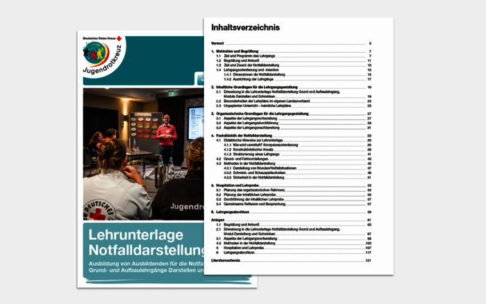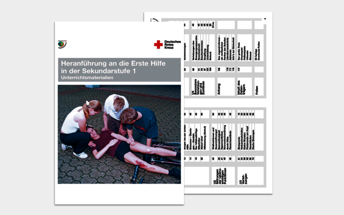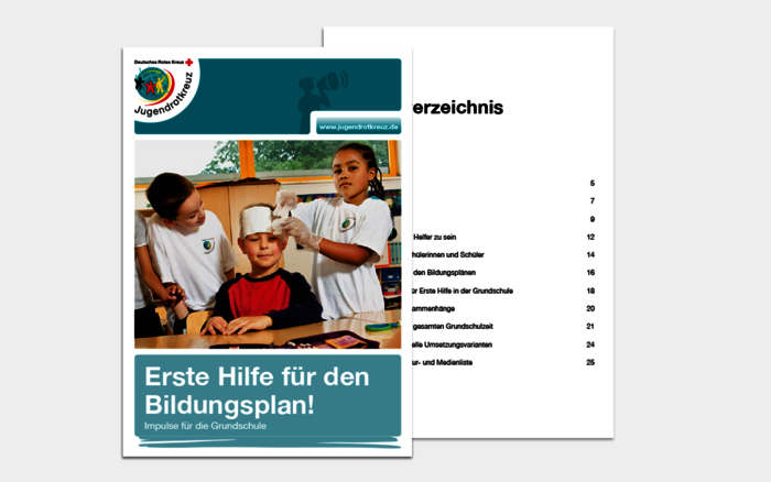 Die Broschüre "Erste Hilfe für den Bildungsplan" richtet sich an Lehrkräfte, die das Thema Erste Hilfe in der Grundschule aufgreifen möchten. Sie macht deutlich, dass Erste Hilfe in der Grundschule die Möglichkeit für nachhaltiges Lernen bietet und in vielen bedeutenden Kompetenzbereichen bei jungen Menschen zu positiven Effekten führt. Darüber hinaus weist sie auf die Bezugspunkte der einzelnen Bildungspläne zur Ersten Hilfe hin und zeigt modellhaft auf, wie Erste-Hilfe-Themen in der Grundschule umgesetzt werden können.