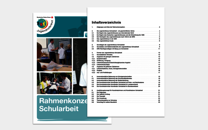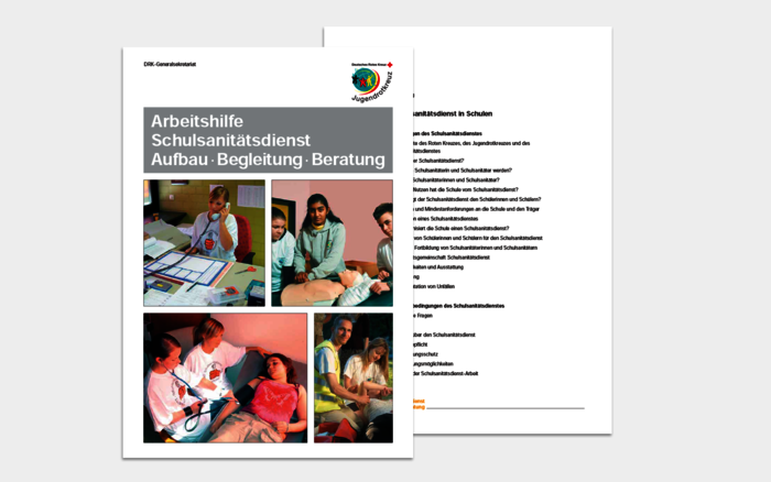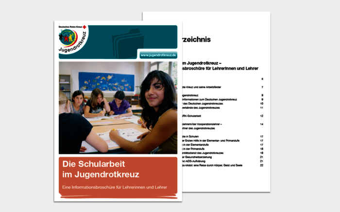Das Deutsche Jugendrotkreuz hat im September 2008 die Broschüre „Die Schularbeit im Deutschen Jugendrotkreuz – Eine Informationsbroschüre für Lehrerinnen und Lehrer“ herausgegeben. Zielgruppe der Broschüre sind Lehrkräfte, die sich für die Angebote des Jugendrotkreuzes im Rahmen der Schularbeit interessieren. Die Broschüre vermittelt Hintergrundinformationen zum Deutschen Roten Kreuz und seinen Arbeitsfeldern. Darüber hinaus werden die Grundsätze der Jugendrotkreuz-Schularbeit vorgestellt sowie ein Überblick über bestehende Angebote des Jugendrotkreuzes gegeben.
