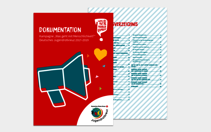 Einen Überblick über die wichtigsten Angebote des JRK zum Humanitären Völkerrecht bietet der Flyer „Auftrag: Menschlichkeit, Werte vermitteln anhand des Humanitären Völkerrechts".